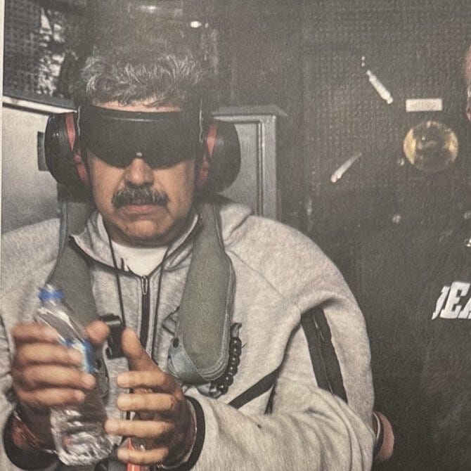 Nicolas Maduro, one of the world’s great monsters, was ‘black-bagged’ and perp-walked along with his wife yesterday, following a Swiss-watch-precise Delta op that only our neighbours to the south are capable of.